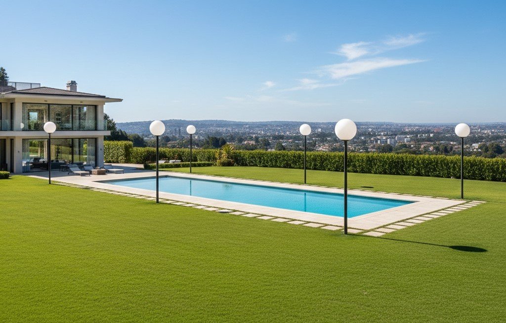 Farola de tramos recto. Altura a medida, globo en policarbonato con o sin protección.Base cilíndrica registrable.