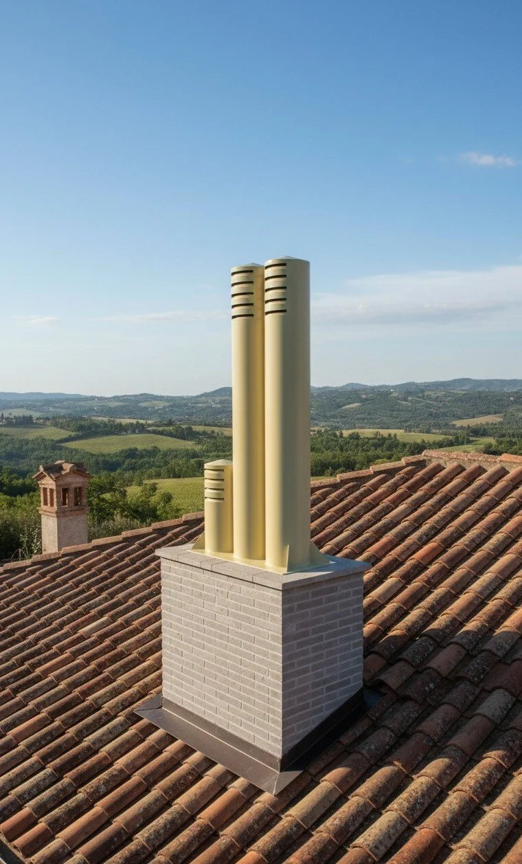 Remate A/26 TRIPLE, sus líneas limpias y geométricas se adaptan a construcciones contemporáneas, perfecto para chimeneas de leña.