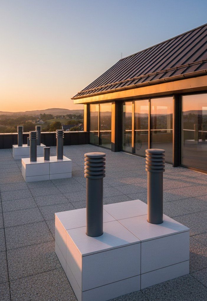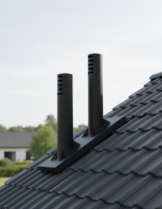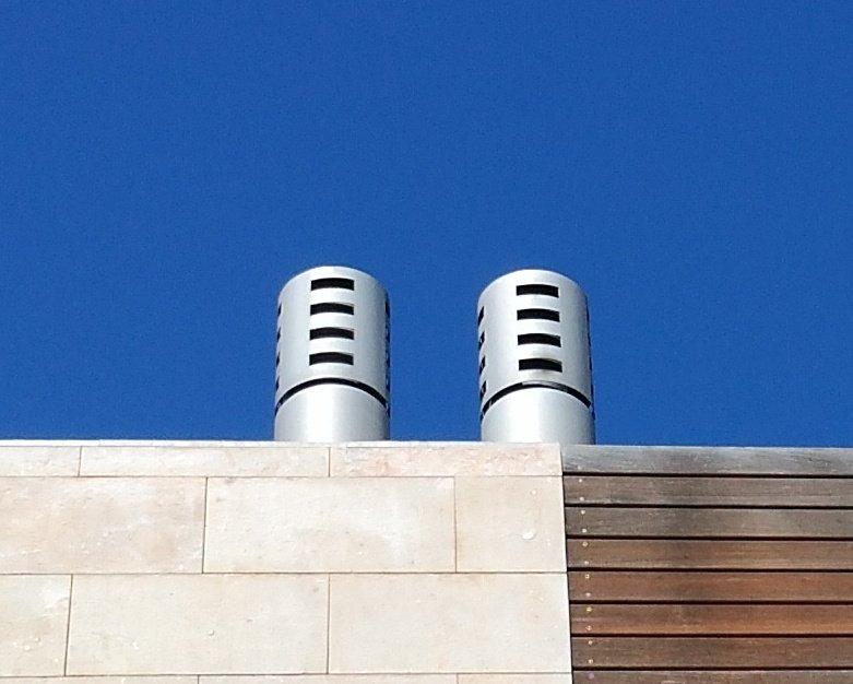 Modelo A/61 OMEGA, con ranuras de ventilación a un solo lado y tapa inclinada, que permite combinar con las lineas inclinadas de las cubiertas
