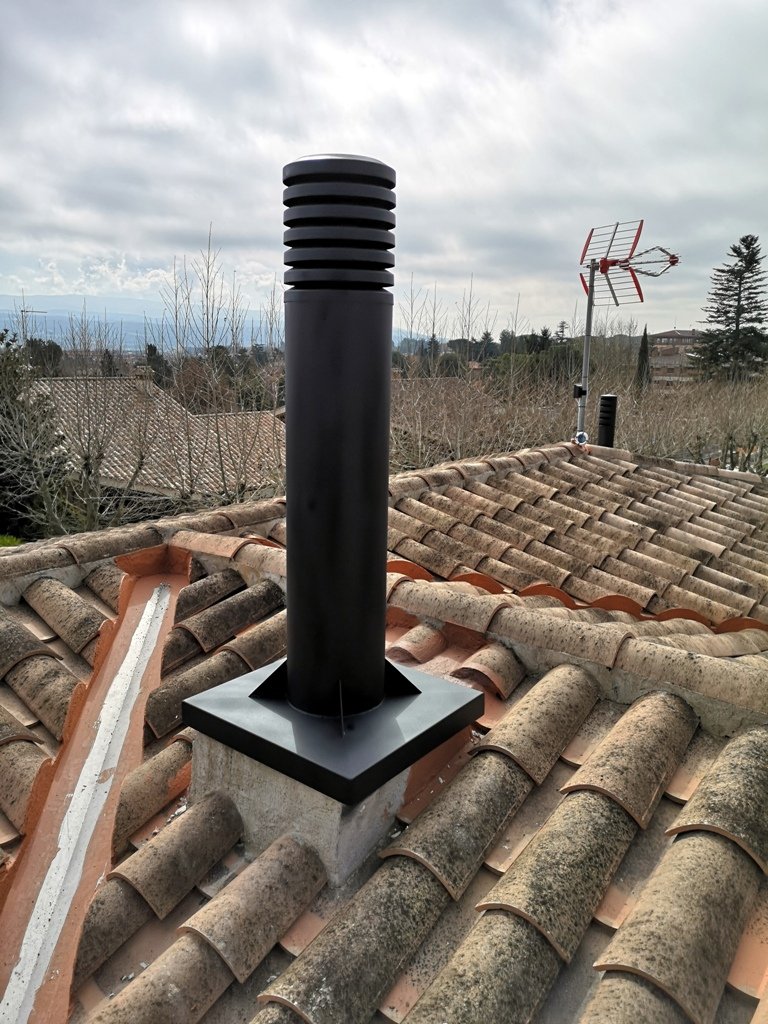 Modelo B/30 APOLO, su estructura modular no solo protege el conducto, sino que optimiza el tiro gracias a su configuración aerodinámica.