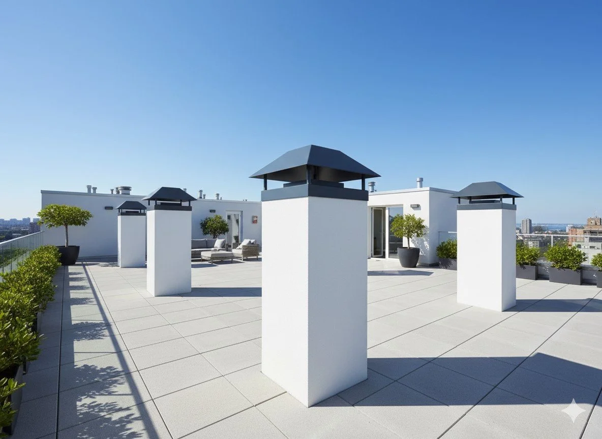 Modelo A/55 y A/56 y A/57 DINAMICO, compuestos por tapa base para cajón, aspirador eólico interior y sombrero embellecedor exterior, para crear extracciones forzadas.